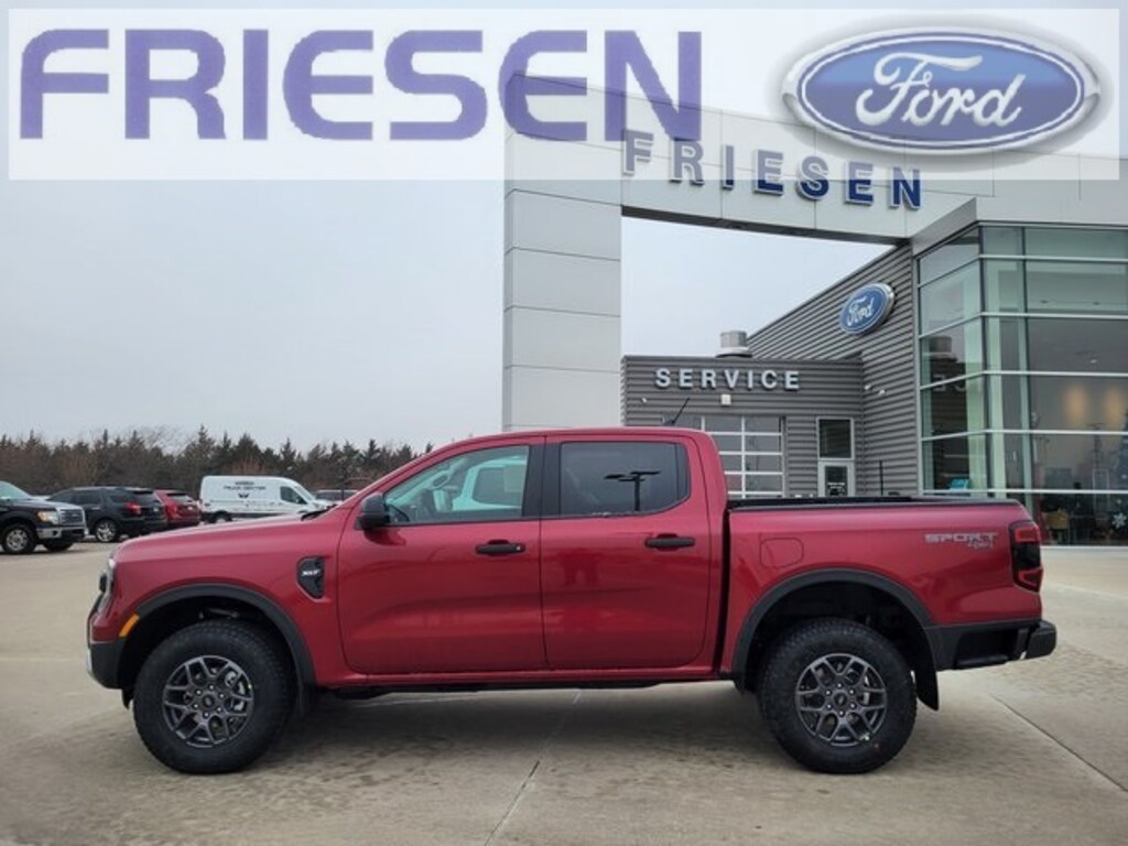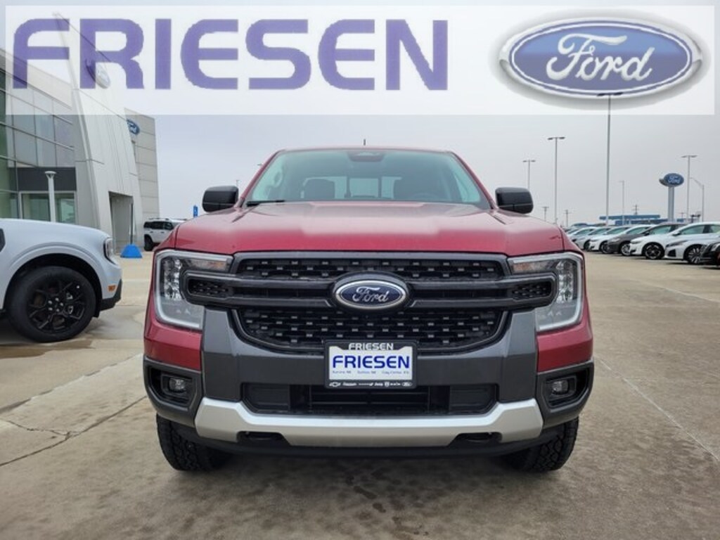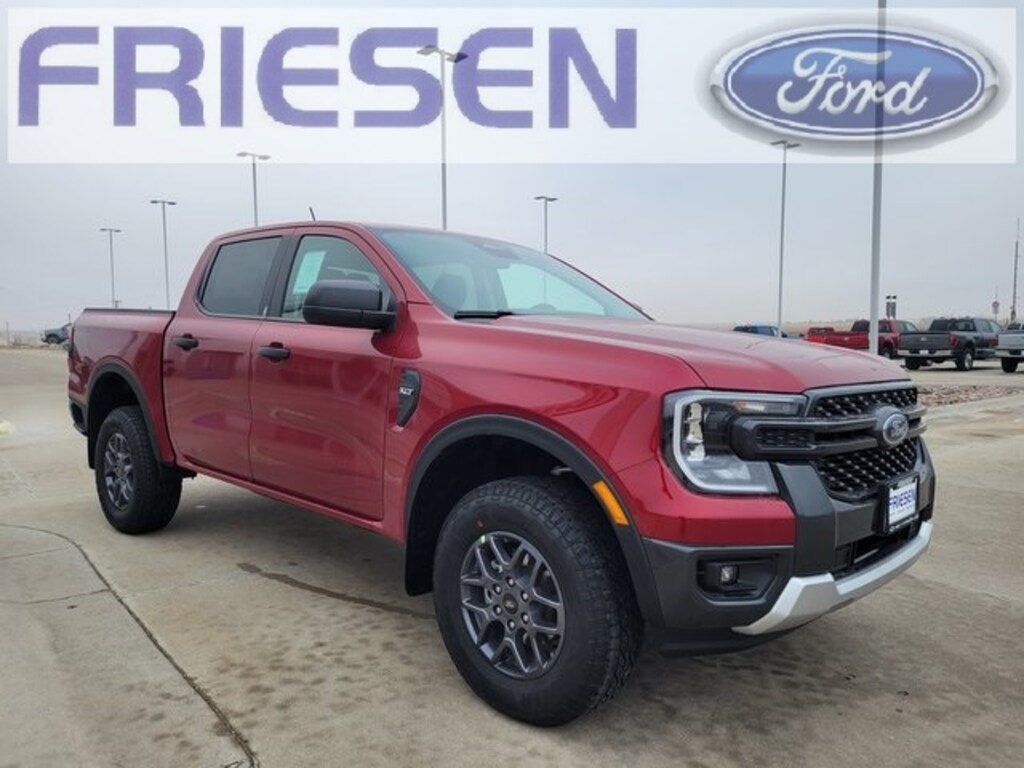 Ruby Red Metallic Tinted Clearcoat 2025 Ford Ranger XLT 4WD 10-Speed Automatic EcoBoost 2.3L I4 GTDi DOHC Turbocharged VCT Navigation System, Bluetooth, Backup Camera, 4X4, Heated Seats, Tow Hitch, Smart Phone Integration, 4WD, 12" Display in Center Stack, 3.73 Axle Ratio, 4-Wheel Disc Brakes, 6 Speakers, ABS brakes, Air Conditioning, Alloy wheels, AM/FM radio: SiriusXM, AM/FM Stereo, Auto High-beam Headlights, Auto-dimming Rear-View mirror, Brake assist, Class IV Trailer Hitch Receiver, Cloth Front Bucket Seats, Compass, Delay-off headlights, Driver door bin, Driver vanity mirror, Dual front impact airbags, Dual front side impact airbags, Dual-Zone Electronic Climate Control (DEATC), Electronic Stability Control, Emergency communication system: SYNC 4 911 Assist, Equipment Group 301A High, Front & Rear Splash Guards/Mud Flaps, Front anti-roll bar, Front Bucket Seats, Front Center Armrest, Front fog lights, Front License Plate Bracket, Front reading lights, Front wheel independent suspension, Fully automatic headlights, Gray Painted Center Bar & Grille Surround, Gray Painted Front Fascia & Rear Bumper, Illuminated entry, Integrated Box Side Step, Internet access capable: FordPass Connect 4G, Leather Shift Knob, Low tire pressure warning, Navigation system: Connected Navigation, Occupant sensing airbag, Outside temperature display, Overhead airbag, Overhead console, Panic alarm, Passenger door bin, Passenger vanity mirror, Power door mirrors, Power steering, Power windows, Power-Sliding Rear Window, Rear reading lights, Rear seat center armrest, Rear step bumper, Rear window defroster, Remote keyless entry, Security system, SiriusXM Satellite Radio, Speed control, Speed-sensing steering, Sport Appearance Package, Sport Box Decal, Steering wheel mounted audio controls, SYNC 4A w/Connected Navigation, Telescoping steering wheel, Tilt steering wheel, Traction control, Trailer Tow Package, Tray Style Floor Liner, Trip computer, Variably intermittent wipers, Voltmeter, Wheels: 17" Gray-Painted Aluminum, 4WD.