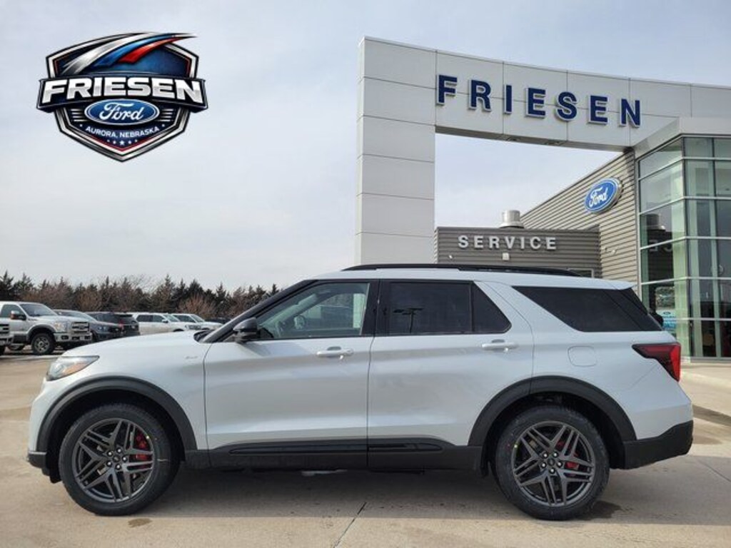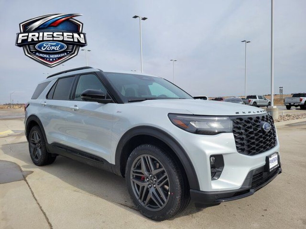 Space White Metallic 2026 Ford Explorer ST-Line 4WD 10-Speed Automatic 2.3L EcoBoost I-4 Navigation System, Leather Seats, Bluetooth, Backup Camera, Sunroof/Moonroof, 4X4, Power Lift Gate, Heated Seats, 3rd Row Seat, Auto Climate Control, Smart Phone Integration, 4WD, 10 Speakers, 110V/150W AC Power Outlet, 2nd Row Captain's Chairs w/E-Z Entry and Armrest, 2nd Row Heated Seats, 3rd row seats: bench, 4-Wheel Disc Brakes, ABS brakes, Air Conditioning, Alloy wheels, AM/FM radio: SiriusXM with 360L, Ambient Lighting, Apple CarPlay/Android Auto, Auto High-beam Headlights, Auto-Dimming Interior Rear-View Mirror, Automatic temperature control, BlueCruise (equipment + 1-Time Purchase), BlueCruise Hardware, Brake assist, Bumpers: body-color, Compass, Delay-off headlights, Driver door bin, Driver vanity mirror, Dual front impact airbags, Dual front side impact airbags, Electronic Stability Control, Emergency communication system: 911 Assist, Equipment Group 300A Standard Package, Exterior Parking Camera Rear, Ford Connectivity Package (one-Time Purchase - 7 Years), Four wheel independent suspension, Front and 2nd Rows Floor Liners with Carper Floor Mats, Front anti-roll bar, Front Bucket Seats, Front Center Armrest, Front dual zone A/C, Front fog lights, Front License Plate Bracket, Front reading lights, Fully automatic headlights, Garage door transmitter, Heated door mirrors, Heated front seats, Heated steering wheel, Heated Unique Cloth Captain's Chairs, Illuminated entry, Knee airbag, Leather steering wheel, Low tire pressure warning, Manual-Folding Sideview Mirrors, Memory Driver's Seat, Navigation System, Occupant sensing airbag, Outside temperature display, Overhead airbag, Overhead console, Panic alarm, Panoramic Fixed Glass Roof with Power Shade, Passenger door bin, Passenger vanity mirror, Performance Brakes, Power door mirrors, Power driver seat, Power Liftgate, Power passenger seat, Power steering, Power windows, Premium Package, Radio: B&O Sound System by Bang and Olufsen, Rain-Sensing Wipers (front Only), Rear air conditioning, Rear anti-roll bar, Rear reading lights, Rear window defroster, Rear window wiper, Red Painted Performance Front and Rear Brake Calipers, Remote keyless entry, SecuriCode Keyless Entry Keypad, Security system, SiriusXM with 360L (3-Year Plan), Speed control, Speed-sensing steering, Speed-Sensitive Wipers, Split folding rear seat, Spoiler, ST-Line Street Pack, Steering wheel mounted audio controls, Tachometer, Telescoping steering wheel, Tilt steering wheel, Traction control, Trip computer, Variably intermittent wipers, Wheels: 20" Ebony-Painted Machined Aluminum, Wheels: 21" Magnetite-Painted Aluminum, 4WD.